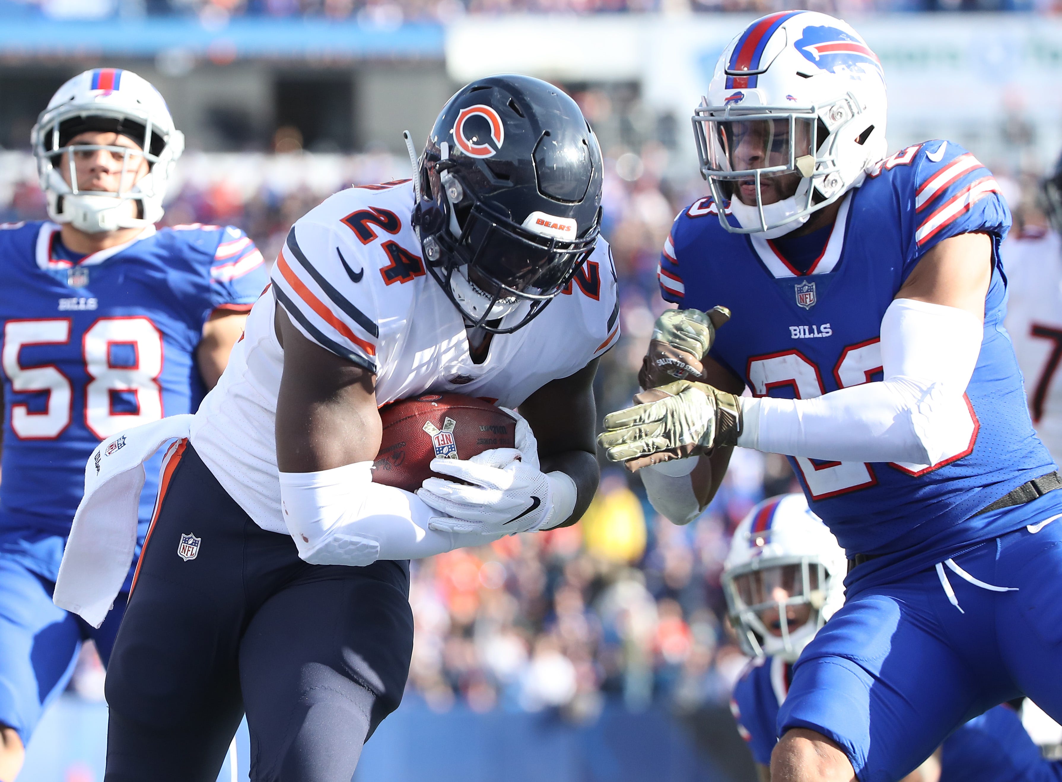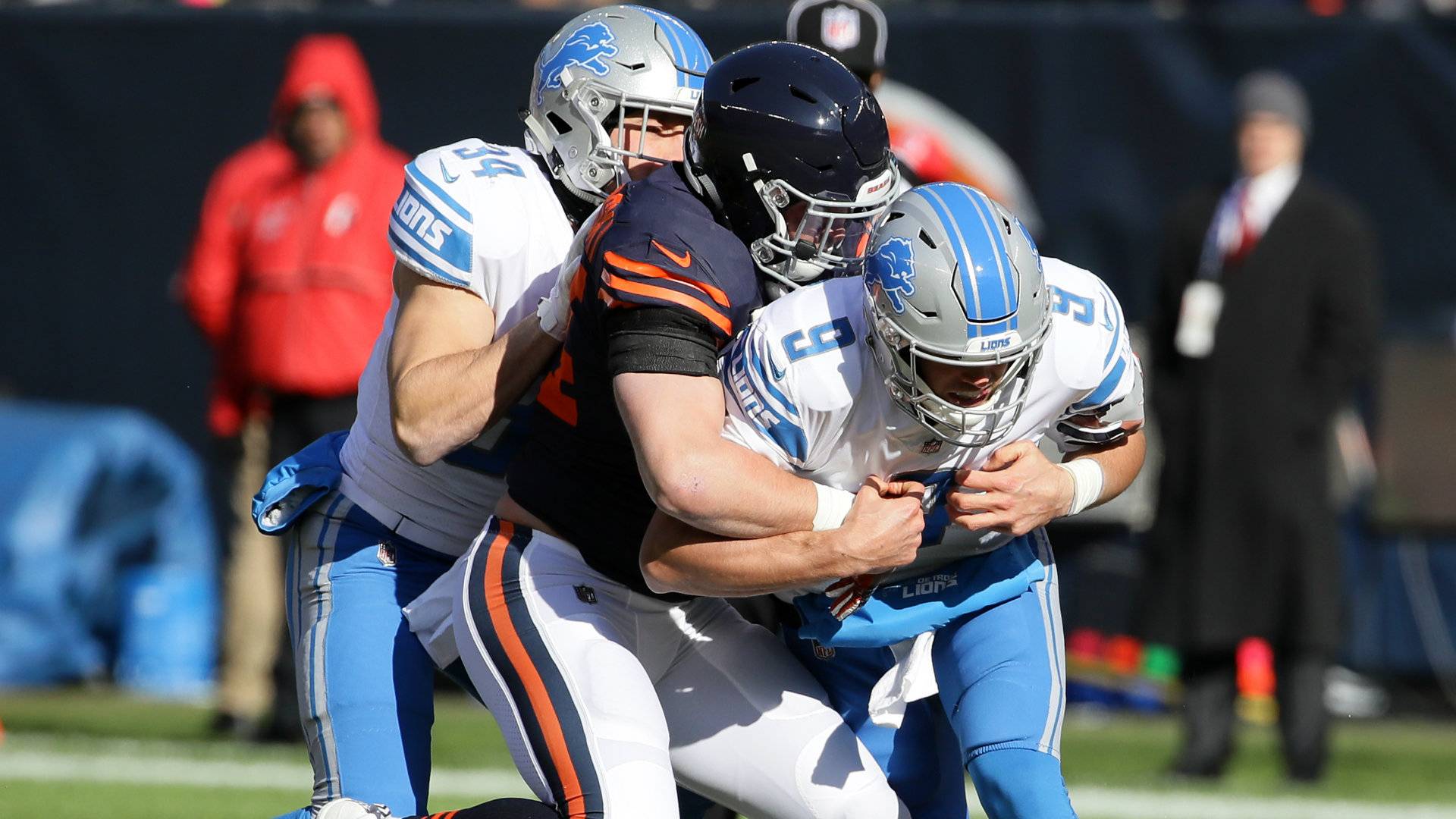 Chicago Bears running back David Montgomery 32 scores a touchdown under Detroit Lions cornerback Amani Oruwariye 24 in the first half of an NFL football game in. Detroit Lions wide receiver Kalif Raymond scores as Chicago Bears defensive back Deon Bush defends during the second half of an NFL football game Sunday Oct. Detroit Lions football game.